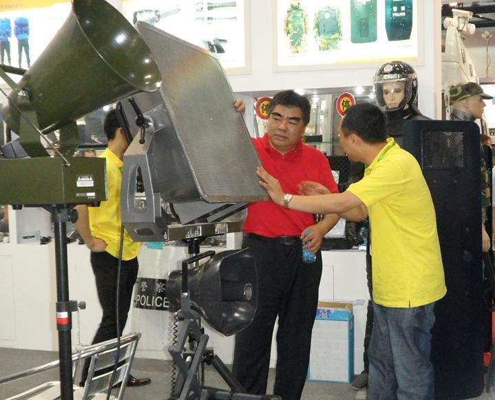 通過(guò)技術(shù)攻關(guān),驅(qū)散器產(chǎn)品再添新丁。CDYX-2000型遠(yuǎn)距離聲波定向發(fā)射裝置,聲壓級(jí)達(dá)到160db以上,亮相北京2012年5月22日警用裝備展覽會(huì)備受與會(huì)者好評(píng),本款產(chǎn)品突破了以前同類產(chǎn)品最大聲壓級(jí)只能達(dá)到153db的技術(shù)瓶頸,大大的提高了有效驅(qū)散距離,從而使驅(qū)散效果和操作人員安全系數(shù)大大提高。本次展會(huì)同時(shí)展出的盾牌型便攜式驅(qū)散器也是我司新近投產(chǎn)的一款單警維和驅(qū)散裝備,此款產(chǎn)品以使用靈活,攜帶輕便為特色,受到一線警員熱情歡迎。